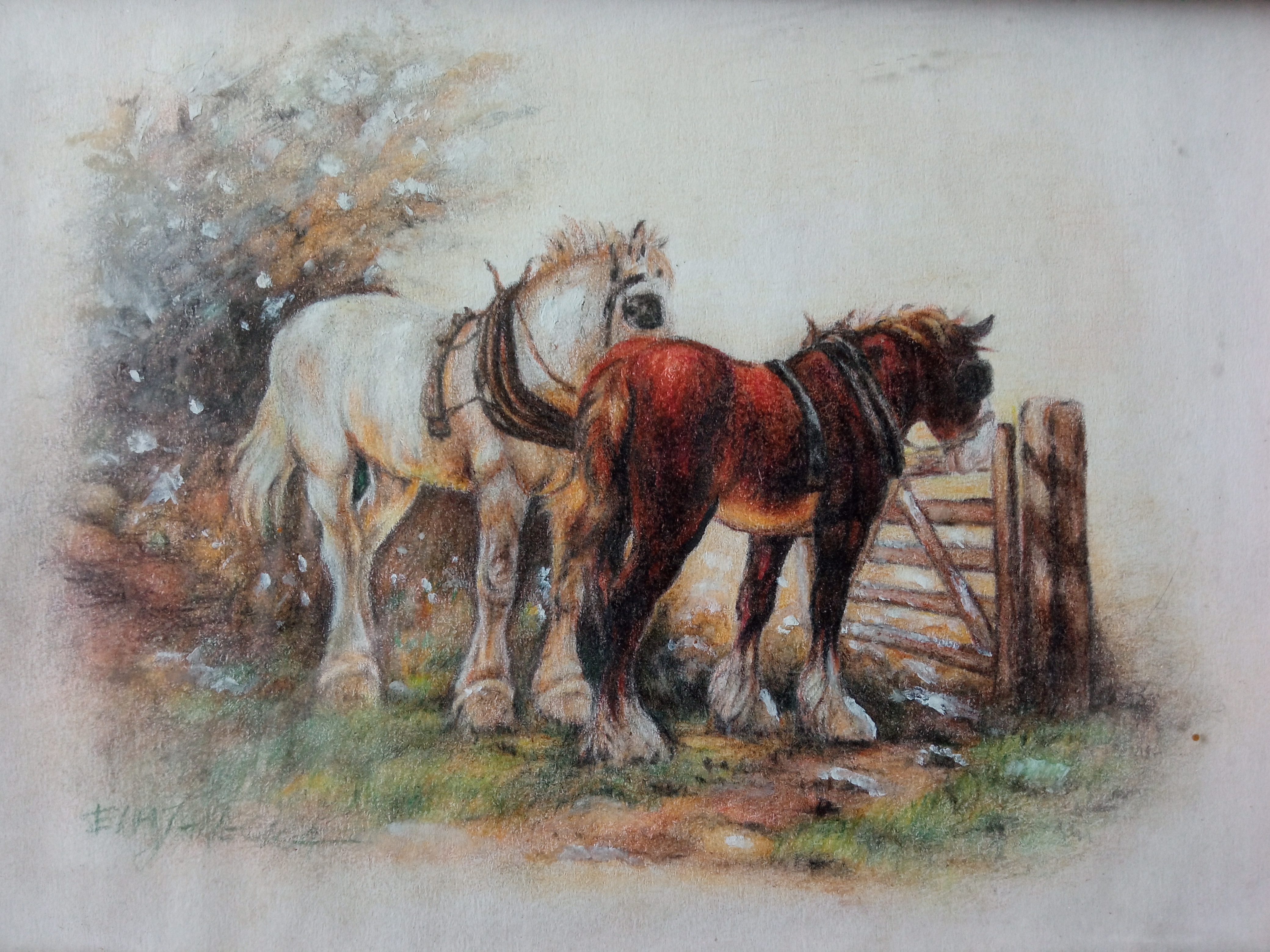 Konie, kredki akwarelowe